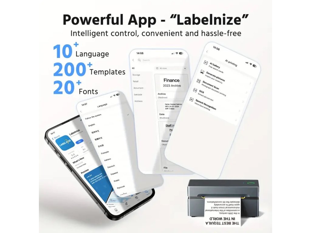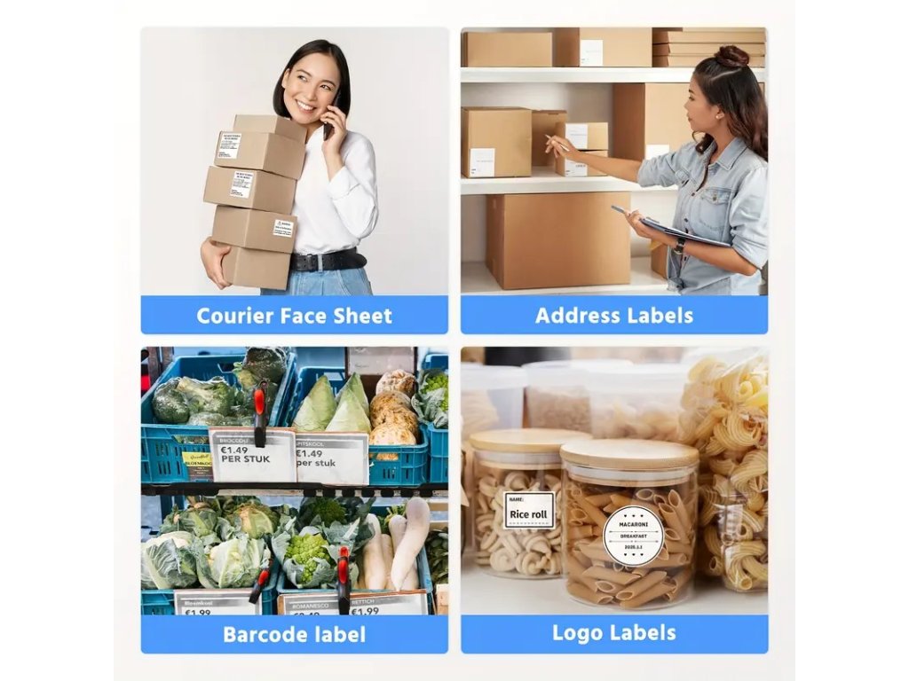 - Široké využití: Termotiskárna se široce používá k tisku štítků z různých tržišť a přepravních platforem, jako jsou Amazon, eBay, ShipStation, ShippingEasy, Shopify, UPS, FedEx, USPS, Shippo atd. (Poznámka: Před tiskem si prosím stáhněte štítek o rozměrech 4×6 palců, který chcete vytisknout na příslušné platformě, a poté jej nahrajte do editoru „Labelnize“ pro tisk). Tuto tiskárnu přepravních štítků s technologií Bluetooth použijte k tisku přepravních štítků a skladových štítků, což vám pomůže zvýšit produktivitu.