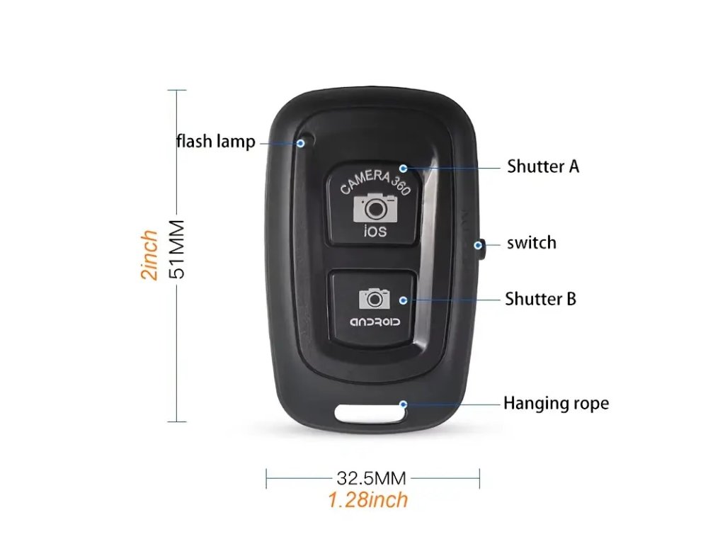 Praktická bezdrátová spoušť, díky které vyfotíte selfie, skupinové fotky i stabilní záběry ze stativu bez chvění. Jednoduše ji spárujete s telefonem a fotíte na dálku jedním klikem. Tělo z ABS je lehké a odolné pro každodenní nošení. Kompatibilita s iOS i Androidem pokrývá většinu moderních telefonů. Napájí se běžnou knoflíkovou baterií (nenabíjecí), takže je vždy připravená k použití.