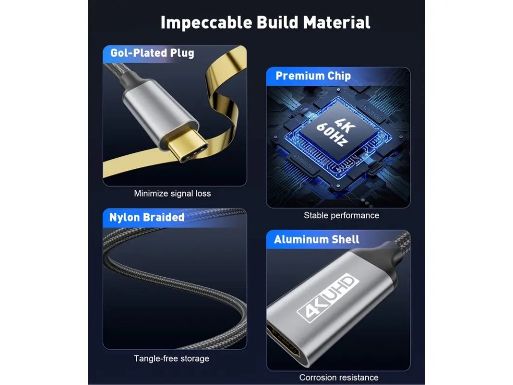 Tento USB‑C na HDMI adaptér umožňuje připojení notebooku, tabletu nebo telefonu s USB‑C/Thunderbolt 3/4 portem k HDTV či monitoru s HDMI vstupem. Podporuje rozlišení až 4K při 60Hz a zajišťuje kvalitní přenos obrazu bez ztráty dat. Adaptér nevyžaduje externí napájení a je plug‑and‑play – stačí připojit a používat. Kompaktní design umožňuje snadné přenášení a je vhodný pro domácí, kancelářské i profesionální použití. Kompatibilní se zařízeními podporujícími USB‑C DisplayPort Alternate Mode a Thunderbolt 3/4.Doplňkové parametry